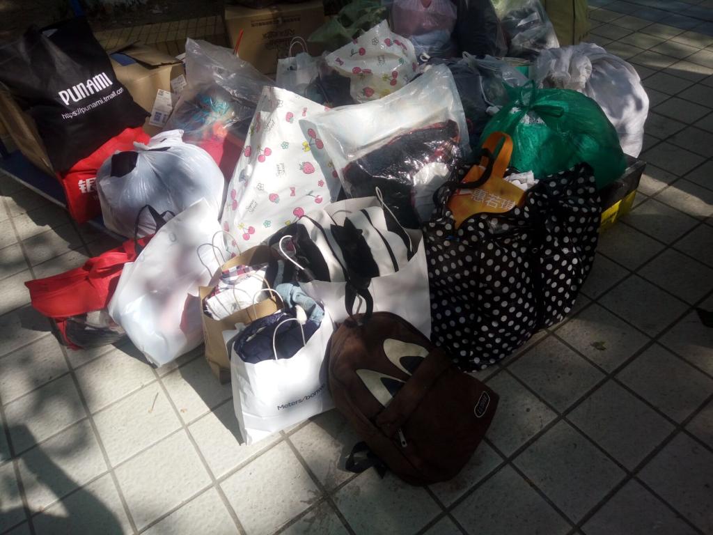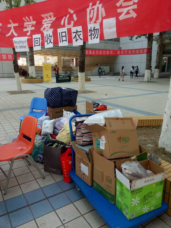 20日17时30分,旧衣回收活动结束。此次活动收获了将近1000件衣物,还有日用品若干,取得了令人满意的结果。同心互惠组织的工作人员及时来到并收走所有衣物,进行清洗消毒之后把它们捐给需要的人。