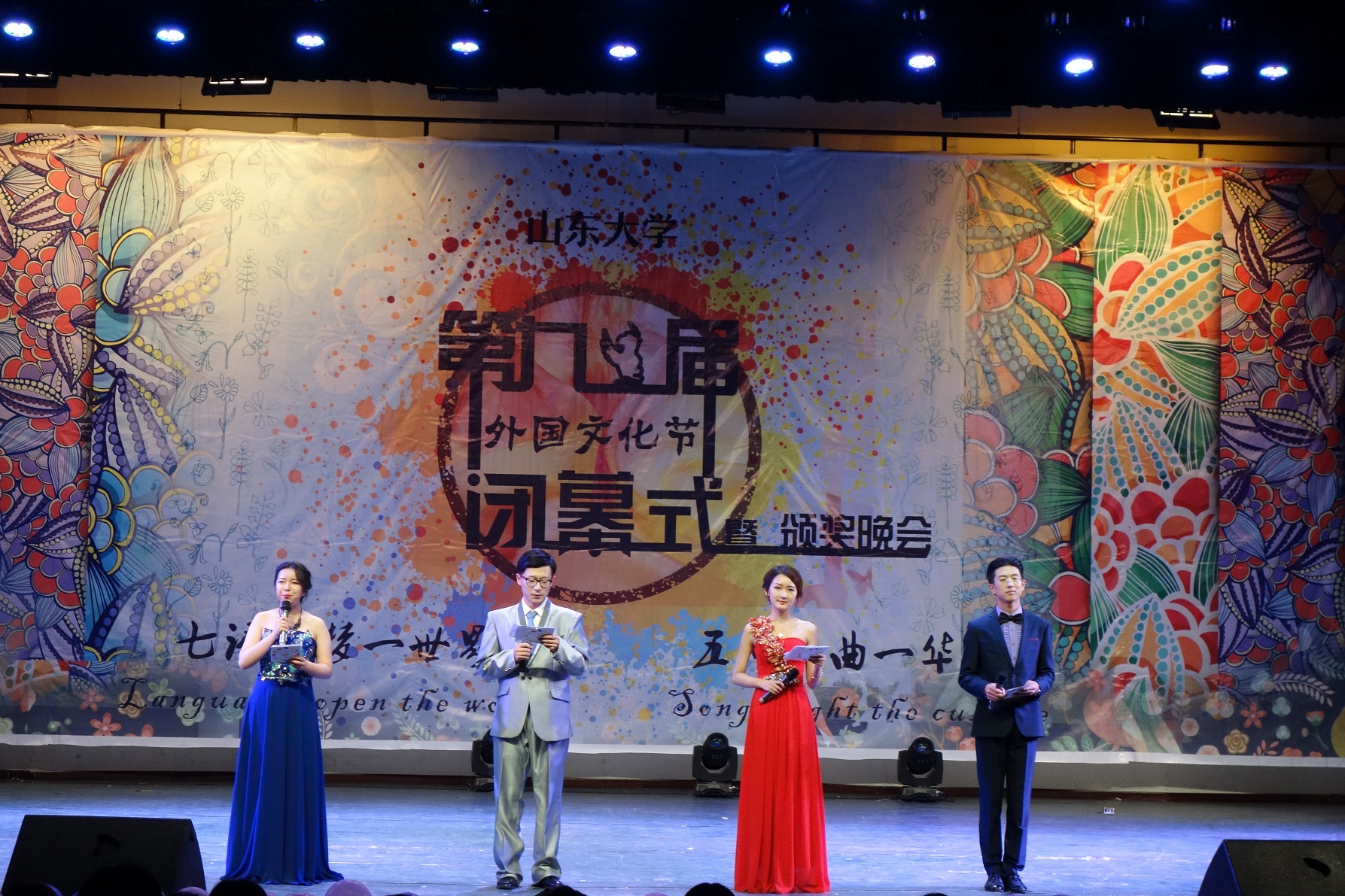 5月16日晚,山东大学第九届外国文化节闭幕式暨颁奖晚会在中心校区圣昆仑音乐厅举行。校本科生院院长赵炳新,本科生院教务管理办公室主任齐炳和,校国际事务部副部长宋春玲,校团委副书记张熙,艺术学院党委书记史永志,济南外国语学校高中部校长刘汉路,外国语学院党委书记郑倩,院长王俊菊,副院长李建刚和副书记高弟出席闭幕式。本次晚会为观众奉献了一场精彩绝伦的视听盛宴,并为在活动中脱颖而出的获奖者颁奖。